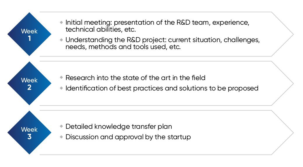 Given that “Scientist in Residence” is a program for transfer of applied knowledge to an R&D project in artificial intelligence specific to each selected startup, the preparation and startup phase is crucial to achieving smooth progress and the satisfaction of all parties.
