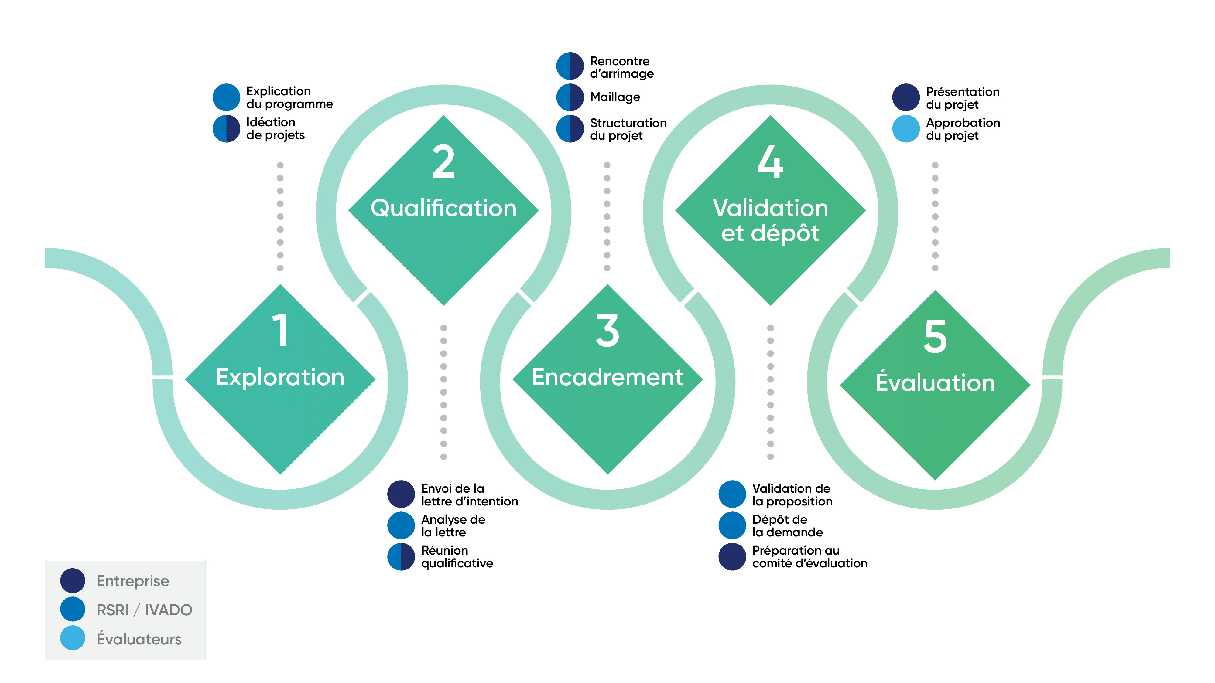 IVADO joue un rôle stratégique en apportant un soutien scientifique, technique et en gestion de l’innovation. Tout comme les RSRI, IVADO accompagne, valide et maille, mais avec une expertise centrée sur les éléments liés à l’intelligence artificielle pour assurer une approche 360° dans les projets soutenus.
